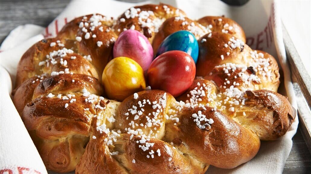 120 мл молока, 2 яйца, 50 г сливочного масла + 100 г для промазки,100 г сахара, 1/3 ч. л. соли, 25 г сырых дрожжей или 8 г сухих, 450 г муки, 70 г изюма, 30 г цукатов.В тёплое молоко добавить соль, сахар, дрожжи, яйца, перемешать, добавить растопленное сливочное масло, муку и зам...
